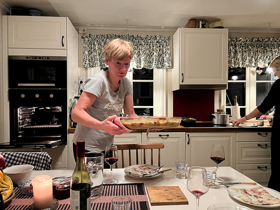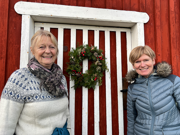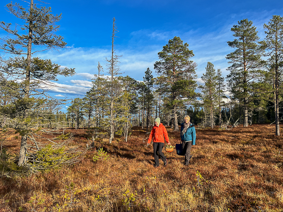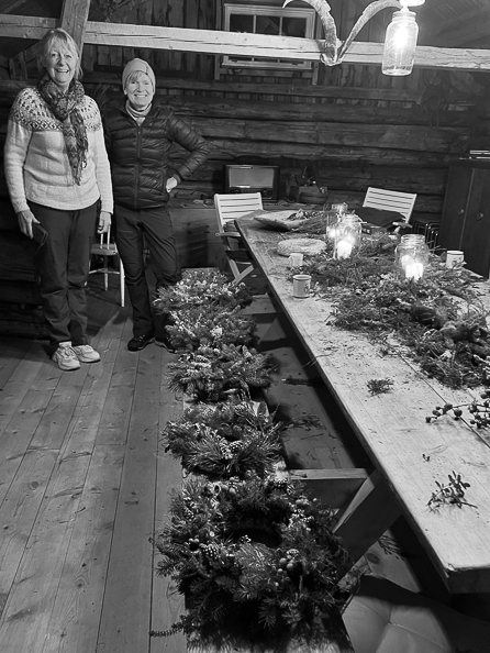 Det er jo tradisjon å binde kranser en senhøstes helg. Anette og Aslaug på vei over Stormyra for å finne materiale.