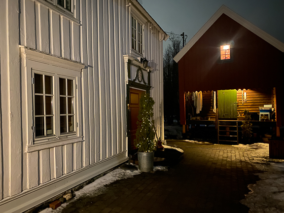 Vinduet er byttet, og selve døra også, men dørkledningen er den samme i dag.
