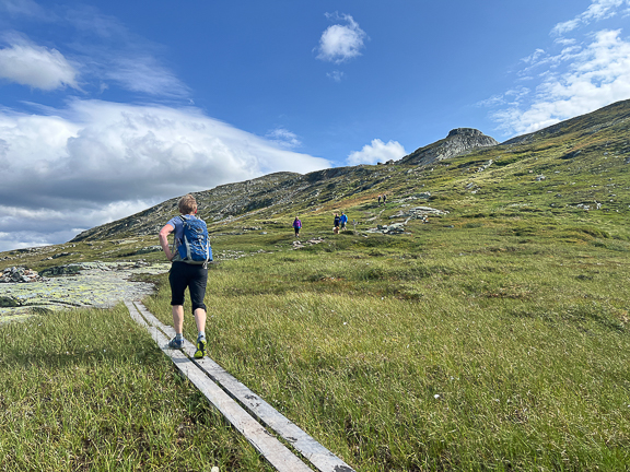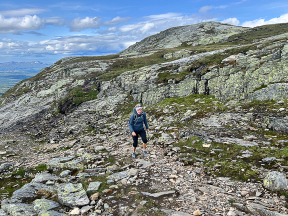 Så bærer det opp mot toppen. Det er ganske bratt opp. Stigningen fra gården er ca 600 høydemeter.