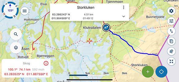Annette har kommet hjem fra ferie i Danmark og vi hadde snakket om å få til en topptur før hun skulle begynne på jobb igjen. Lørdag var det meldt brukbart vær og vi ble enige om å gå på Storkluken i Meråker. Så vi kjørte til Kluksdal.