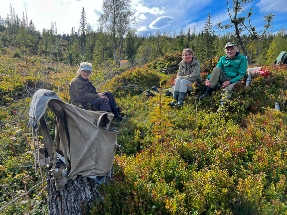 Jeg plukket litt bær nedover mot "Grånøm" og traff på denne gjengen. Det var skikkelig trivelig og vi fikk historier knyttet til Helges gode gamle ryggsekk.