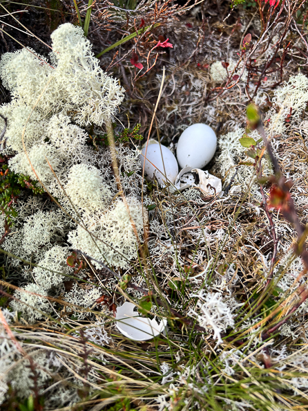 Men spesialister vi forhørte oss med mente at eggene lignet på andeegg og at dette trolig ikke var noe rede, men et sted en predator har gjemt fangsten. Pussig...