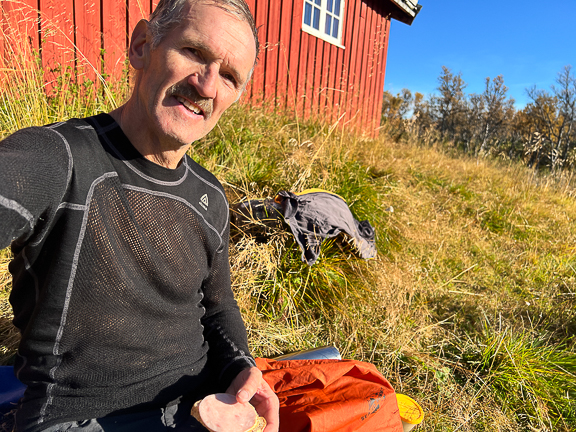 Det var kald vind på toppen, så jeg tok bare en rask matbit der. Men det ble en god rast på Jo-Olsavollen.