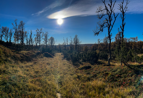 På stien nedover. Kjempefint terreng.