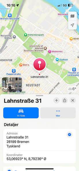 Soterios hentet oss på stasjonen i Bremen og så kjørte vi hjem til de.