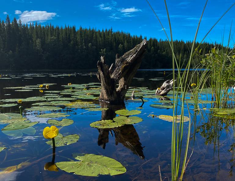 Vannliljer på Skjeltjønna 10.7.20. |