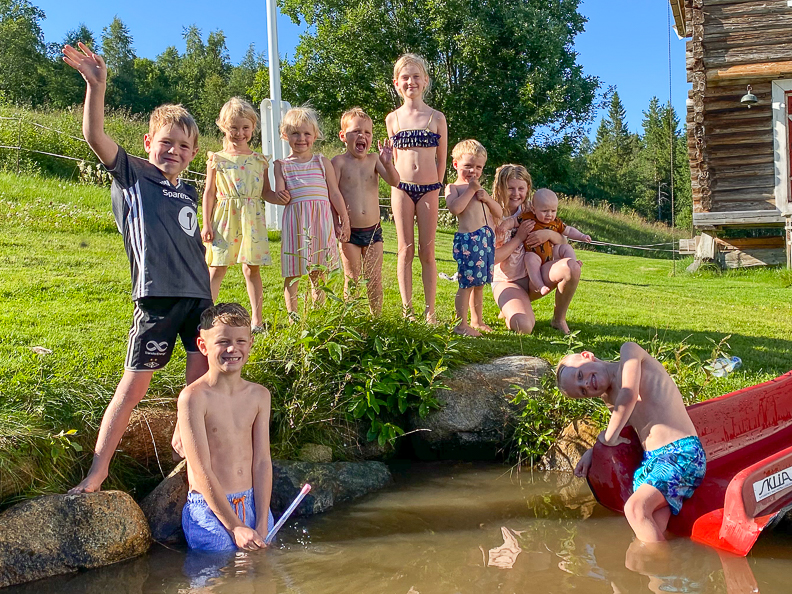 Hele gjengen på campingferie i Sverige